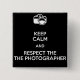 Keep calm and respect the photographer 15 cm square badge