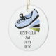 A cool running shoe with a wedge design beneath the heel. The saying can be changed as desired.