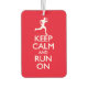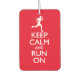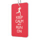This fun design for runners is inspired by the classic British wartime propaganda poster. The slogan Keep Calm is followed by "Run On" rather than "Carry On". The icon replacing the royal crown is a silhouette of a running man. This simple text and icon design is perfect for runners of all levels!