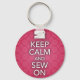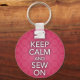 Keep Calm and Sew On pink button pattern keychain by WRKDesigns.