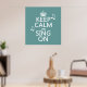 This reads Keep Calm and Sing On, in the style of the classic keep calm poster. There are music notes floating beside the words. It's one of my most popular designs, and popular with everyone who loves to sing.