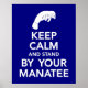 Stand by your Man or manatee in this case. This print is done in the style of the popular Keep Calm posters from World War II. It features a silhouette of a manatee on a navy blue background.