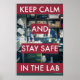 Ideal for the laboratory, this poster shows an image of a laboratory in the background with the classic advice of keeping calm.