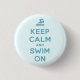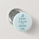 Funny button for swimming, diving or water sports fans with parody of the famous British slogan - Keep Calm And Swim On.