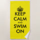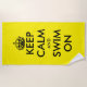 Keep calm and swim on funny yellow beach towel. Make your own fun meme parody. Personalise with your own text and colours. Modern font and crown logo. Great for beach, pool, lake, boat etc.