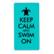 It says Keep Calm and Swim On, but you can change the words in the template if you want to customise the product.