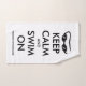 Keep calm and swim on sports hand towel gift for swimmer. Funny quote with swim goggles logo. Add your own personalized name or custom monogram. Cool Birthday gift idea for swimming enthusiast, boyfriend, girlfriend, husband, wife, brother, sister, team mates, coach, trainer, water polo player, diver, triathlete, co worker, retired person, best friend etc. Black and white vintage keepcalm typography template design. Fun presents for kids and adults who love swimming laps, diving, beach etc. Also nice as give away or prize at swim meets, competitions, club events, triathlon, training, pool etc.