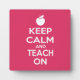 A product featuring keep calm and teach on slogan, a variation of keep calm and carry on slogan. This product is great for teachers and students and everyone dealing with teaching and education