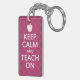 Keep Calm and Teach On, Pink Plaid Key Ring