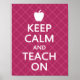 Pretty fuchsia magenta pink plaid background with white "keep calm and teach on" text, a fresh and feminine gift for the female teacher to provide motivation and inspiration from the classic "keep calm and carry on" British wwii propaganda. A lovely teacher appreciation gift. Copyright © www.CuteComfy.com