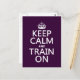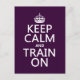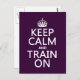 This reads Keep Calm and Train On, in the style of the classic keep calm poster. It's a clean simple design with the traditional crown at the top. Perfect for everyone from personal trainers, exercise enthusiasts, to train spotters.