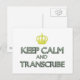 Keep Calm and Transcribe embellished with crown on these shirts and gifts for Medical Transcriptionists. Can be personalised. Nice idea for National Medical Transcription Week, Birthday, Christmas, Co-worker, Transcriptionist Friend, Employee Appreciation or Incentive.