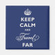 This classic vintage royal british themed 'keep calm' internet meme design features a romantic calligraphy script in ivory white against a classic navy blue background.