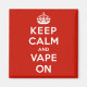 A vaper's funny rendition of the famous "Keep calm and carry on" World War II effort poster. The slogan is Keep Calm and Vape On and the colour is red. Vape on and be inspired, ecig lovers!