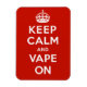 A vaper's funny rendition of the famous "Keep calm and carry on" World War II effort poster. The slogan is Keep Calm and Vape On and the colour is red. Vape on and be inspired, ecig lovers!