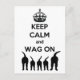 Keep calm and wag on T-Shirt. Royal crown with dog paw prints. Five dog butt silhouettes with wagging tails.