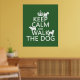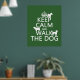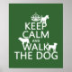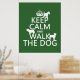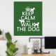 This is the classic war poster "Keep Calm and Carry On" reworded to "Keep Calm and Walk The Dog". There are silhouettes of dogs standing and sitting on and around the words. The design makes great presents or gifts for dog owners/lovers, or as a thank you for kennels/vets/rescue centres and dog walkers.