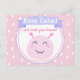 NewParkLane - Cute Stop Corona Virus Pandemic Postcard, featuring a cute pink monster, against a pink background with a pattern of little white drops, and a 'Keep Calm and wash your hands!' quote in a lilac banner in fun, script typography. The backside says: 'Stay safe!'