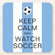 KEEP CALM AND WATCH SOCCER WITH SOCCER BALL AND ARGENTINA FLAG BLUE STRIPES FOR SPORTS LOVERS AND SOCCER PLAYERS.