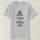 Keep calm and weld on funny welder t shirt. Cool tee with custom quote. Available in grey and other colours. Modern typography template with crown. Personalise with your own humourous welding quote.