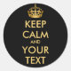 KEEP CALM and YOUR TEXT - customised background Classic Round Sticker