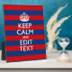 Have your personalized Keep Calm saying on this fine custom gift for yourself or for someone special on your list. Offered on a vibrant red and blue stripes decor. Humorous or whimsical try on your creative words on the two editable text fields you see on this product page. Remember to use CAPITAL letters for best results.