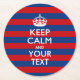 KEEP CALM AND Your Text on Blue Stripes Round Paper Coaster
