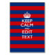 KEEP CALM AND Your Text on Red Blue Stripes Table Number