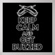 Barber Shop humour with "Keep Calm and Get Buzzed" with an illustration of a pair of crossed barber hair clippers.