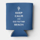 A play on the vintage British slogan, Keep Calm and Go to the Beach, done in an authentic font in white appears with a vintage sea shell for a fun and cool design on blue, or any dark or medium background colour of your choice, on this can or bottle cooler. Matching items and many other Keep Calm designs are available in my Zazzle store.