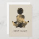 Elegant zen greeting card with a silhouette of woman sitting in yoga pose and text "Keep Calm"