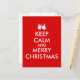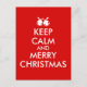 This customisable keep calm Christmas design postcard has jingle bells instead of the keep calm crown logo. It says Keep Calm and Merry Christmas.