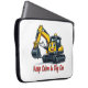 Smiling yellow excavator mascot on a stylish laptop sleeve. Keep Calm and Dig On quote perfect for construction lovers, engineers & digger fans. Fits most laptop sizes, durable & fun!