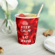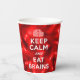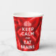 Zombie apocalypse? No problem! Based on the Keep Calm meme, cup says "Keep Calm and Eat Brains." No crown, of course, but there's a brain -- with a bite missing! -- and a gory background. Funny for Halloween, or any time you're hiding out from the undead.