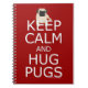 Keep Calm Hug Pugs Text Red blank lined Spiral Notebook