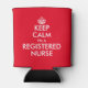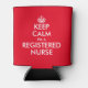 Keep calm i'm a registered nurse can coolers. Cute favour present. Make your own funny keep calm and carry on parody beverage holder design for nursing day, nr nurse, registered nurse, lpn, caregiver, nursing school graduation etc. Vintage keepcalmandcarryon typography with crown. Create your own keepcalm spoof with this template. Customisable background colour. Red and white.