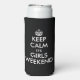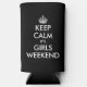 Keep calm it's girls weekend funny Seltzer Can Cooler. Personalised slim can cooler. Make your own funny keep calm and carry on meme design. Create your own fun beverage holders. Black and white or custom colours. Fun party favour idea for girls night out, wedding, bridal shower, crazy bachelorette, ladies night, gathering, meeting etc. Fun favours for bride and bridesmaids. Double sided print.