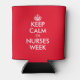 Keep calm it's nurses week bottle and can coolers. Make your own funny keep calm and carry on parody beverage holder design for nursing day, nr nurse, registered nurse, lpn, caregiver, nursing school graduation etc. Vintage keepcalmandcarryon typography with crown. Create your own keepcalm spoof with this template. Customisable background colour. Red and white.