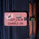 Keep calm and carry on with Las Vegas tours or gambling as you travel with a cute Las Vegas luggage bag tag for those who love casino nightlife on the Strip in Nevada. Pretty pink background.