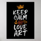 Keep calm and love art makes a perfect gift for art teacher, art major student, those born with artistic talent of drawing, painting, sculpting and creating masterpiece. Cute and chic design with handwriting style font.