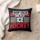 Hockey theme throw pillow with text of black, white, and red that reads Keep Calm And Play Ice Hockey!