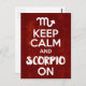 Keep Calm Scorpio On Birthday Astrology Postcard