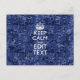 Keep Calm Your Text on Blue Digital Camouflage Postcard