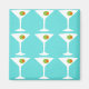 This Keep 'Em Coming Martini Magnet features a turquoise background and the tiled image of a white silhouette of a martini glass. Inside each glass is a glorious green olive with an orange pimento. This fun magnet is perfect for anyone who wishes they were a character in a classic movie. Shaken not stirred, please!