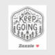 Keep going sticker don't quit never give up. Personal development retro vintage hiker trail runner marathoner rock climbing consistency quotes. Growth mindset mountains mental health support.