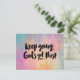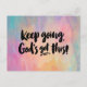 Modern Typography design with words in black calligraphy script, "Keep Going. God's Got This!" on colourful watercolor background.