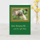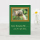 Squirrel clinging to mesh wire bird feeder with all he's got. And what he's got is determination! Front text: "Keep hanging on...you've got this." Inside text: "Things will get better soon". Text is customisable. Send to friend who needs some encouragement.