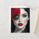 Keep in touch with this beautiful postcard featuring an ai illustration of a black and white woman with red roses.