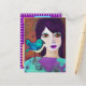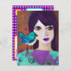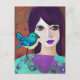 Say "hello" to a friend with this cute abstract art card with a girl and her bird in teal and purple abstract ai art.