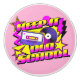 Colourful retro style vinyl record and cassette design with "Keep it old school " text decoration, geometric shapes, triangles, stars and rounded shapes